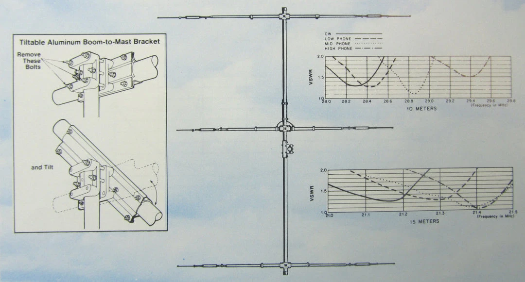 Dual Band beam for 10 and 15 meters. Incorporates Hy-Gains Superior mechanical design and has been computer optimized and range-tested for maximum performance. DB-1015 features a 14 foot boom in 4 sections packaged for DX-peditions. It handles full legal power and has Hy-Gains standard rugged boom-to-mast clamp.