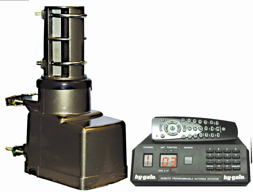 Rugged heavy-duty rotator is built in a weather-proof one piece cast aluminum housing. Has precision metal gears and steel thrust bearings for durability. Includes rotator, controller, mount clamps and hardware.