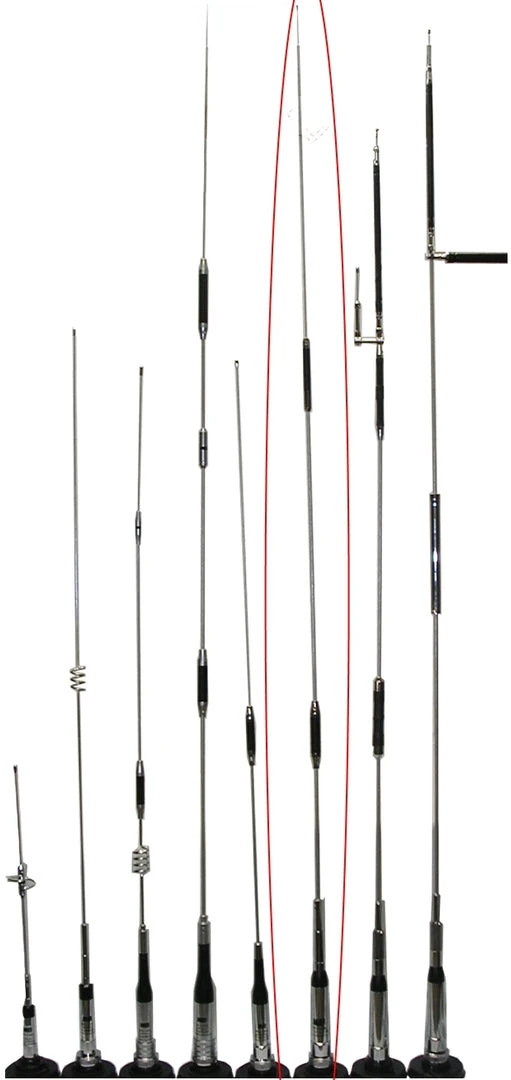 Slim 38 inches, similar to MFJ-1436, but 2.15 dB on 2-Meters, 3.5 dB on 220 MHz, and 6 dB gain on 440 MHz. 100 Watts