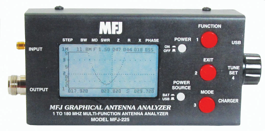 Get a big picture every time with MFJ-225`s built-in back-lighted 3-inch LCD graphic display. Make fine circuit adjustments using full-screen easy-to-view SWR bar graph, capture vivid swept displays for SWR, impedance, return loss, phase angle, more! Operation is simple, you can adjust the center frequency, tuning step, and sweep width instantly while viewing your plot, literally shaping it before your eyes.