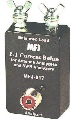 1:1 Current balun lets you use SWR and Antenna Analyzers on balanced line antennas and other loads. 1.8-30 MHz.